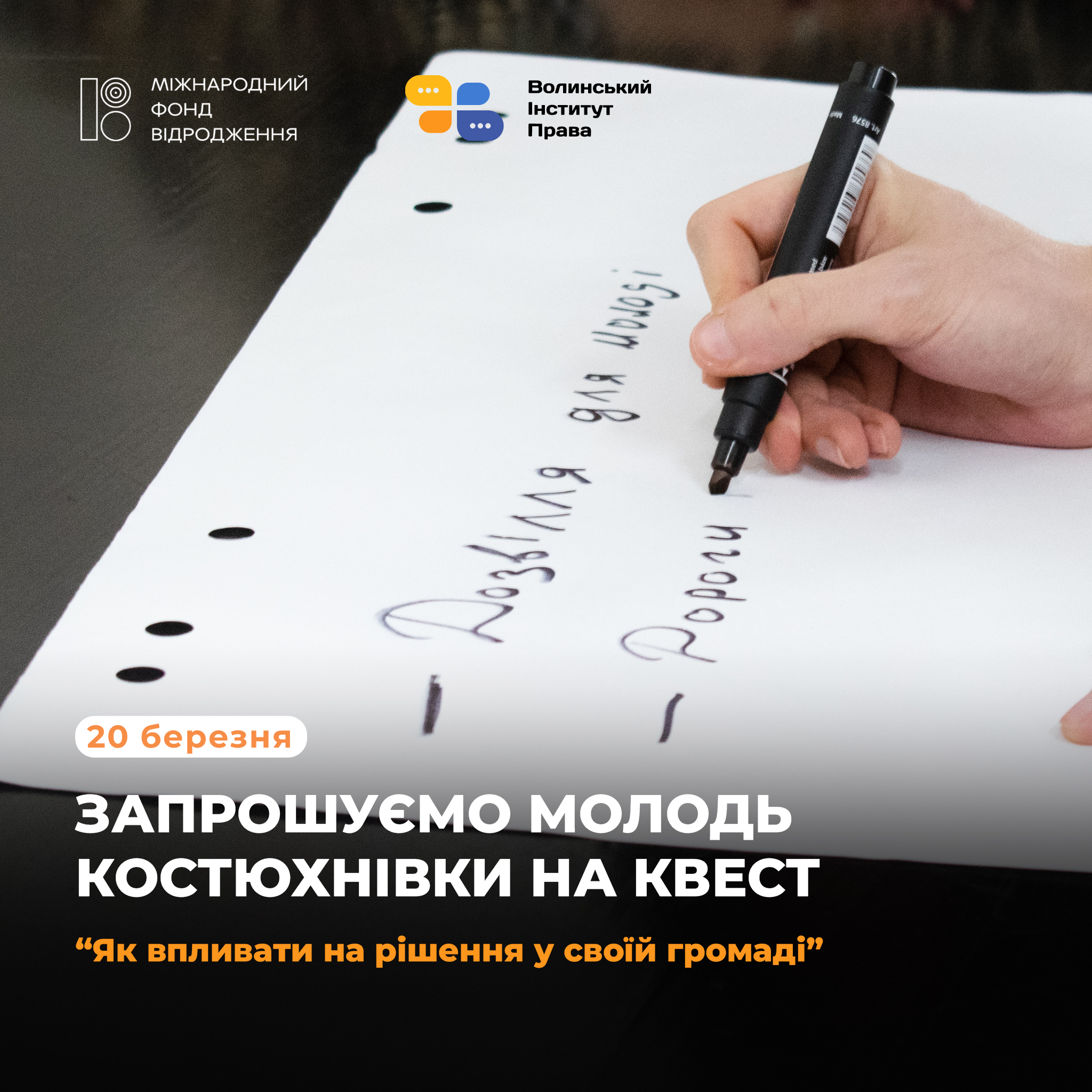 Розкажемо про це на квесті “Як впливати на рішення у своїй громаді”, що відбудеться у селі Костюхнівка 20 березня.